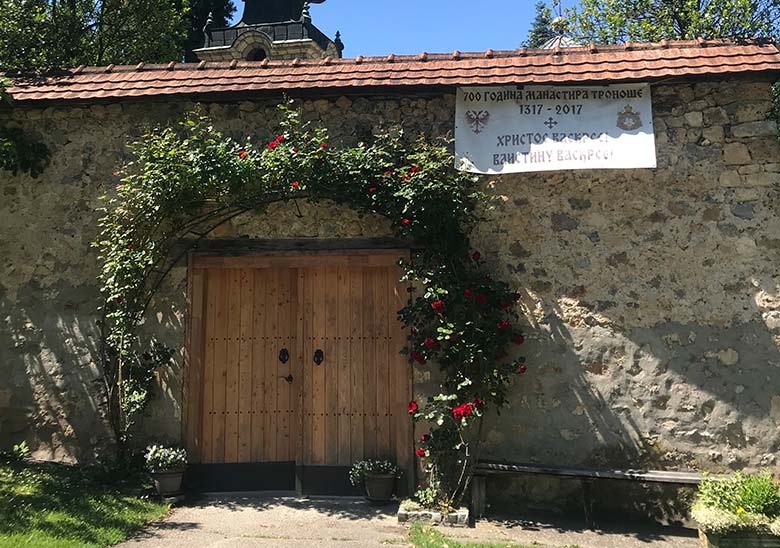 Према записима проте Ивка Поповића из 1890. године постанак манастира датира из периода владавине Драгутина Немањића. Он је започео градњу манастира, док се завршетак радова на манастиру приписују његовој супрузи Каталини (1317. године). Налази се у подножју Троношке планине, у сеоском насељу Коренита. Манастир је добио име према оближњој реци Велика Троноша, која настаје спајањем три речице – Мала Троноша, Лисина и Клашница. Манастирска црква је изграђена у облику слободног крста, са кубетом над централним делом. Припада рашкој стилској групи. Храм је зидан од ломљеног притесаног камена. Главни улаз у храм је у барокном звонику, дозиданом у другој половини XIX века, где се налази једно одељење и преграда између припрате и средњег дела храма. Манастирска црква подигнута је од ломљеног и полуобрађеног камена, са лепо обрађеним и профилисаним прозорским и улазним отворима и угаоним завршецима зидова. Претпоставља се да је манастирска црква живописана од свог постанка. Међутим, стари живопис није сачуван. Садашњи живопис настао је током XIX века и урадили су га иконописци Михаило Константиновић, родом из Битоља, и Никола Јанковић, родом из Охрида. Године 1964. Завод за заштиту споменика културе Србије је извршио конзерваторске радове на манастирској цркви Троноша, као и адаптацију конака у Музеј старе српске књиге, који представља успомену на Вуково школовање у овом манастиру.